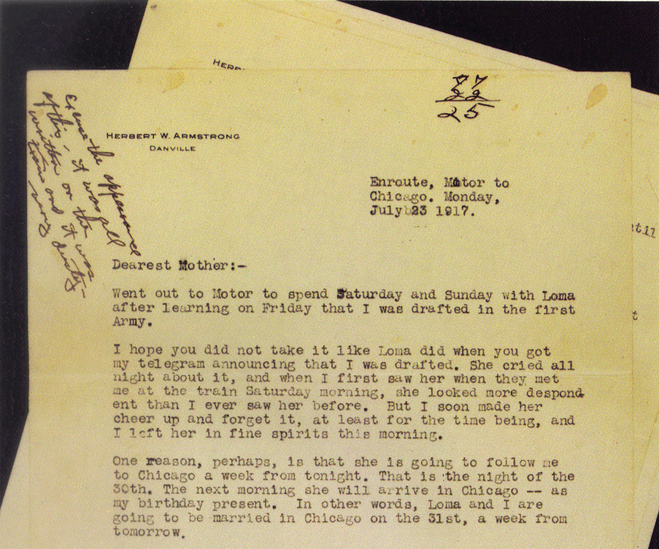 Loma's dream letter. In this letter addressed to Mr. Armstrong's mother, Loma Armstrong relates the remarkable incident of her and her husband's calling.