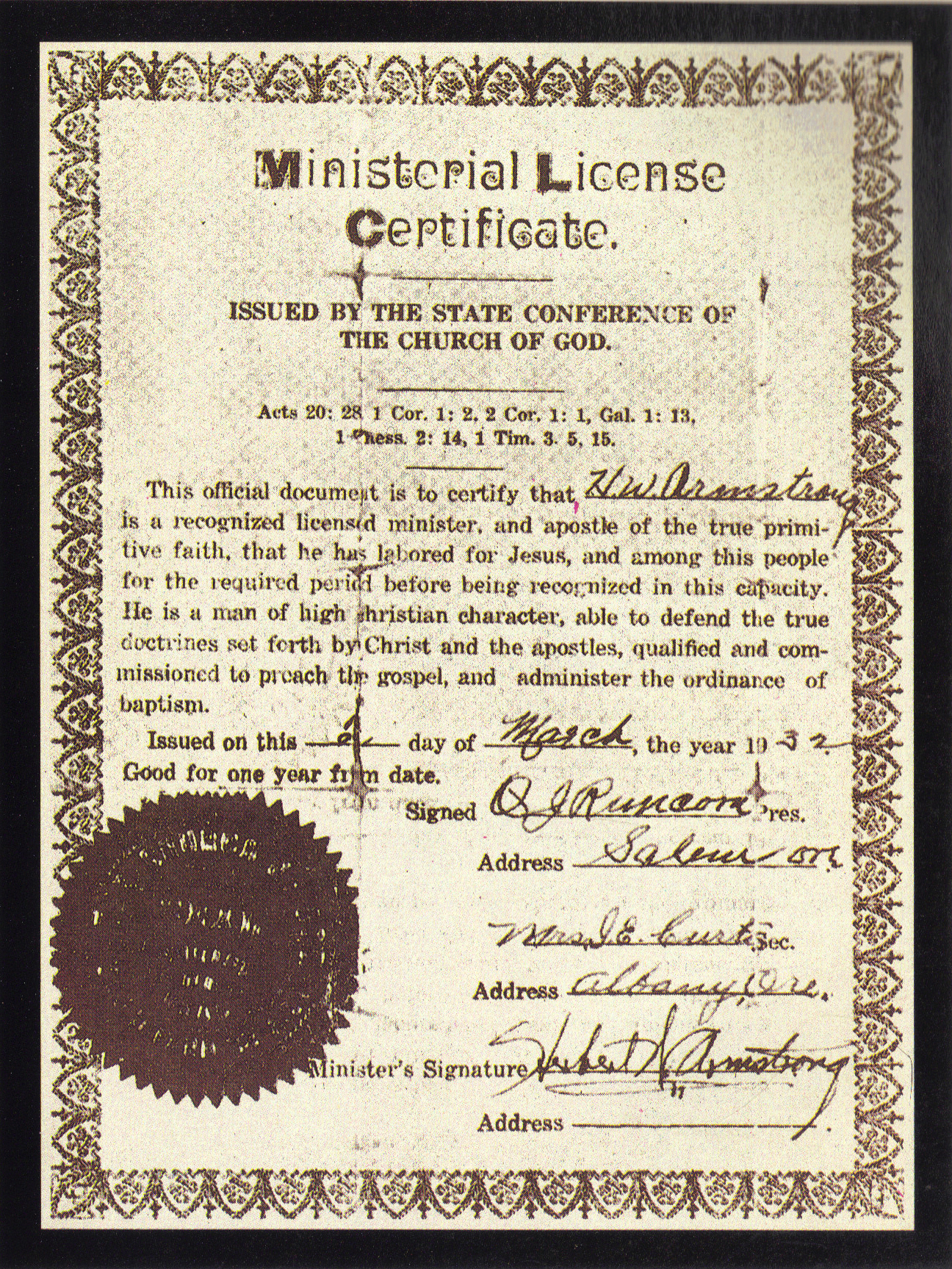 All of us at Eugene church, and half the members at Jefferson severed all connection and effort at cooperation with those who had proved themselves willing to serve Satan and their own personal greed, and to injure the very work of GOD! I am going to END all comment about that group here, with the epitaph that -- like a dead tree -- they have since split and resplit into so many little tiny groups, all hating one another, that no one seems to know where all of them are.
