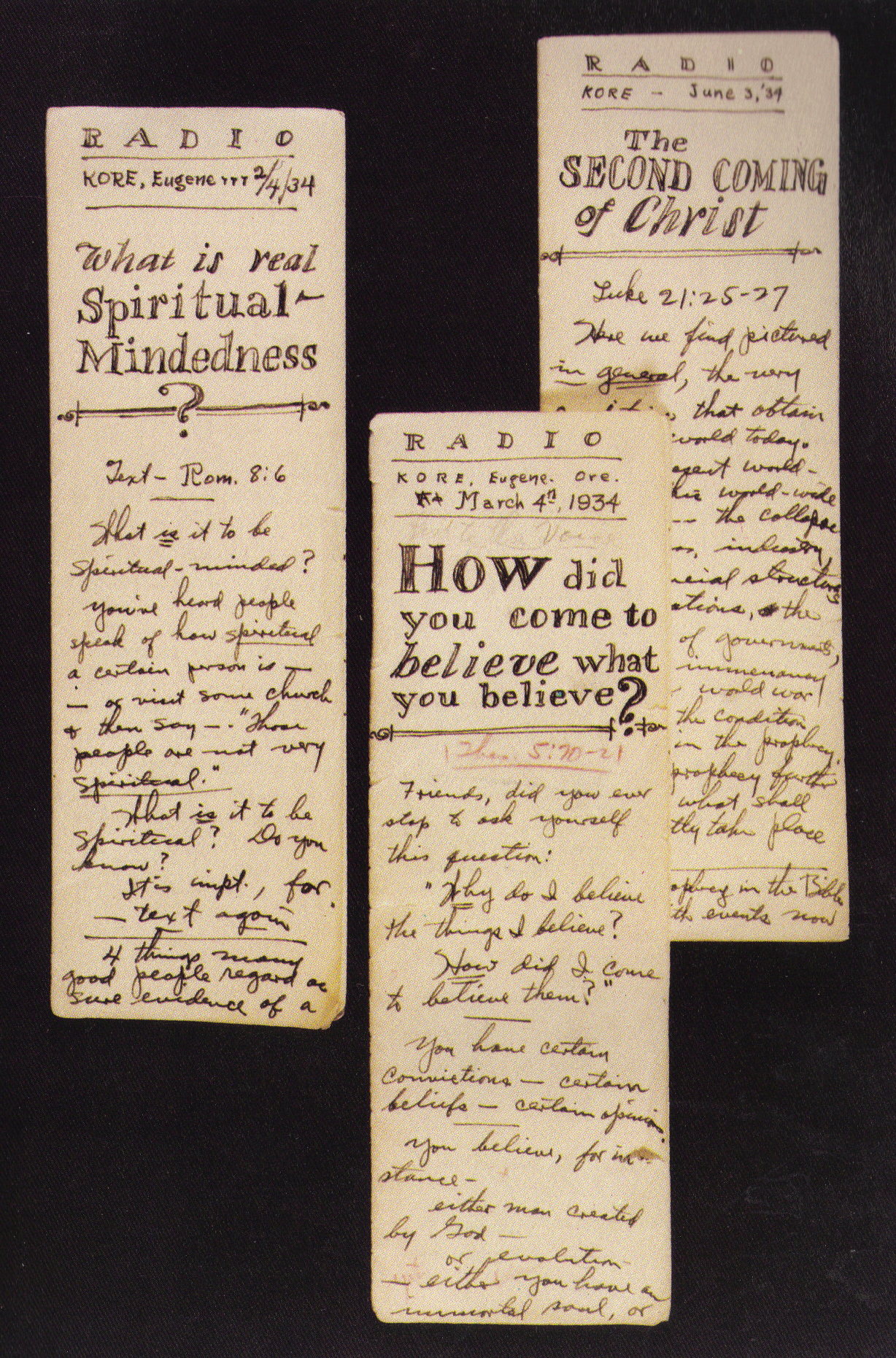 At this time I put the program on KORE, broadcast simultaneously by wire hook-up over KQLM, Salem, at 10 each Sunday morning. Then came the 123-mile drive to Portland for the 4:00 p.m. broadcast.