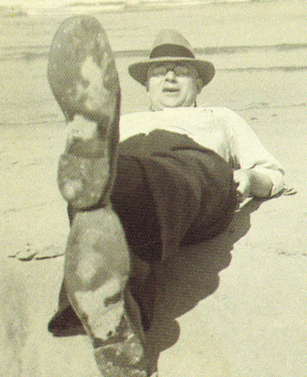 I shall never forget his rapping on the basement door, three or four sticks of wood across his outstretched arms, yelling: