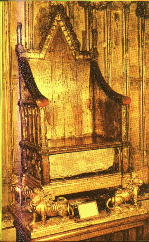 The Coronation Chair of England has been in constant use to crown the Monarchs of England since 1296 AD when Edward I had it constructed for his coronation. The chair was built specifically to house the Coronation Stone which Edward brought from Scotland. It had resided there since being brought by Fergus from Ireland in 500 AD. It's earliest use as a Coronation stone in Ireland was 583 BC when Eochaide the Heremon was crowned High King of Ireland after his marriage to Tea Tephi, the daughter of Zedekiah, the king of Judah conquered by Nebuchadnezzar in 586 BC. See Jeremiah and Tea Tephi